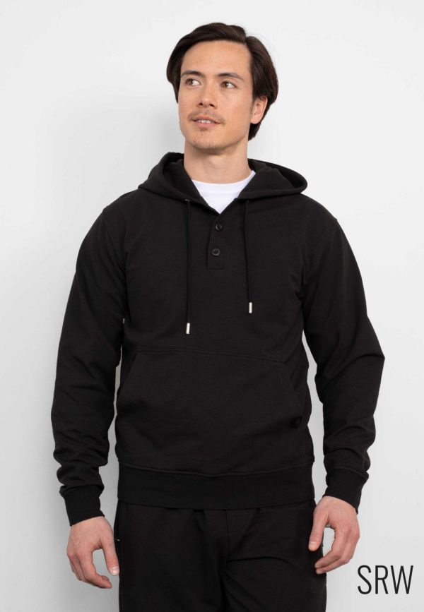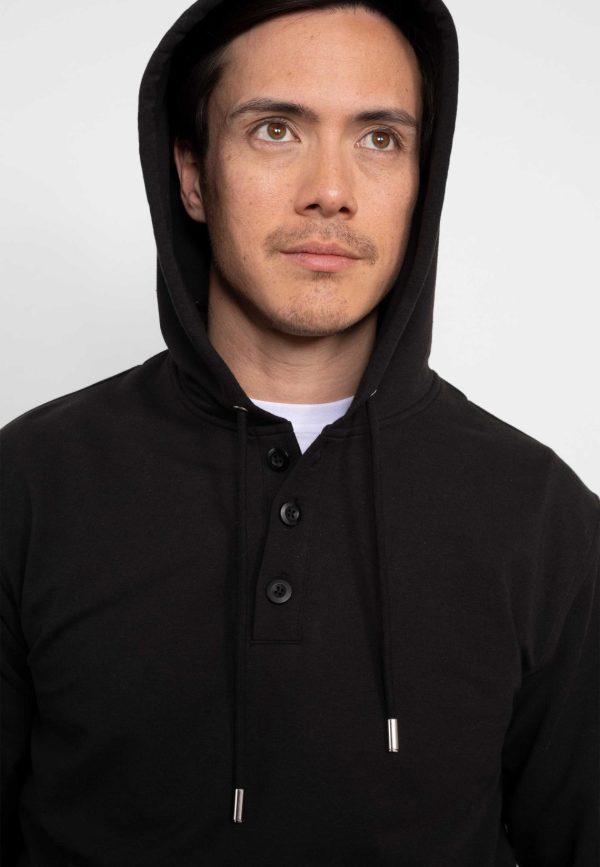 Made from a loopback cotton blend fabric, this men’s black hoodie is beautifully soft with plenty of stretch to help keep its shape. Soft ribbed cuffs give warmth in cool temperatures, while there’s buttons at the neck in case you get too hot. The kangaroo pocket at the front will keep hold of any essentials you may have. Available in two classic colours, this versatile cover-up can be worn at the weekend with dark jeans, or at home with matching jogging bottoms. It’s also an excellent choice for keeping comfortable on long flights or train journeys.