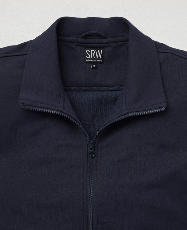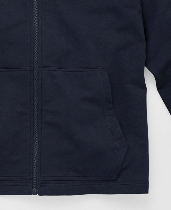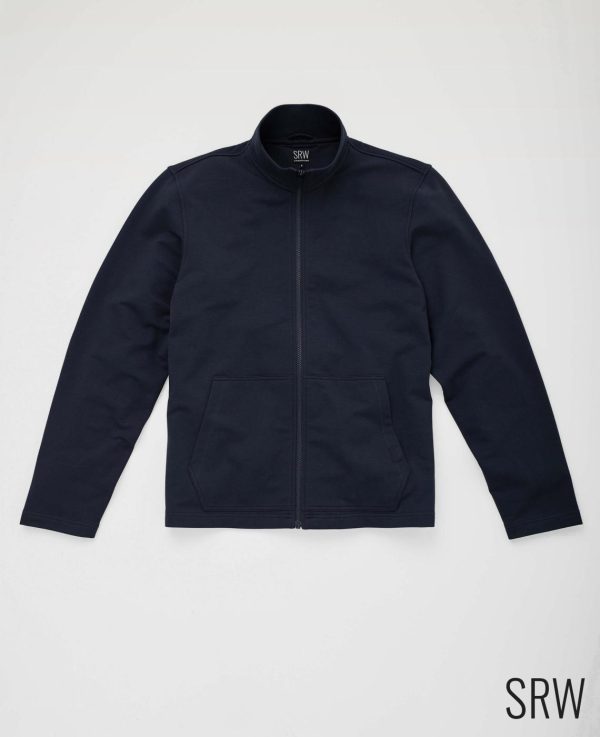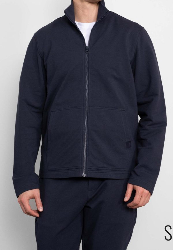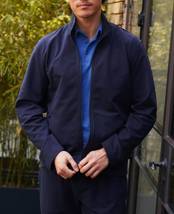Savile Row Company Casual Tops | Men Navy Stretch Cotton Blend Zip-Up Sweatshirt Navy