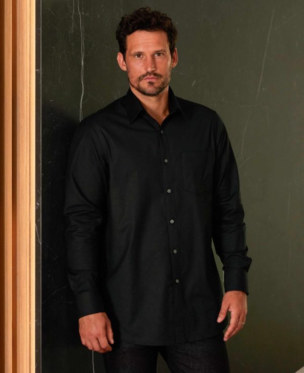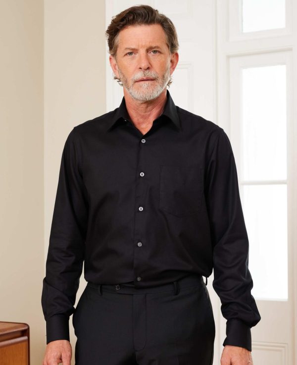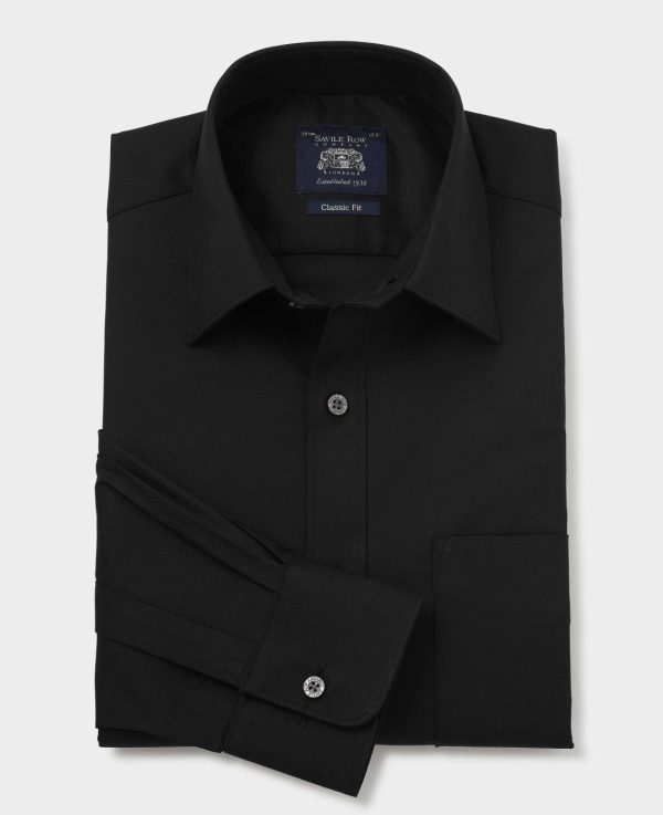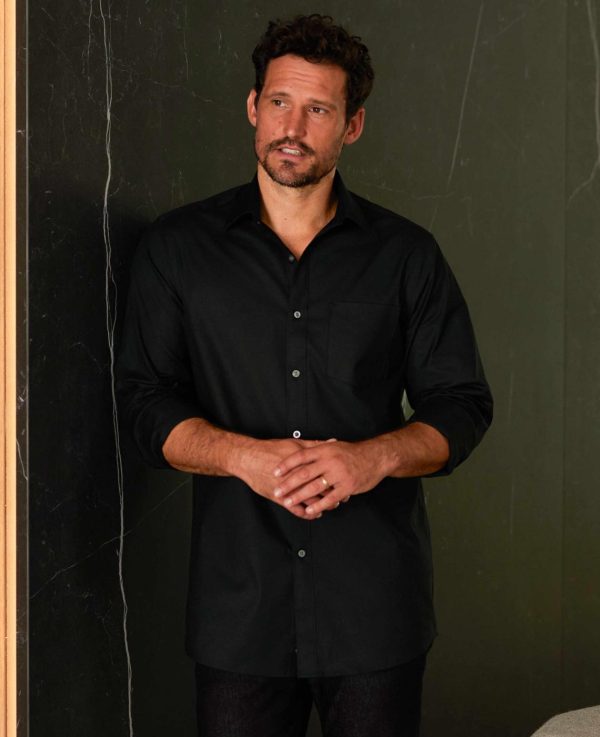 Made from cotton with a hint of stretch, this men’s black formal shirt is a versatile option that you can easily dress up or down. Thanks to its crisp curl-resistant collar and classic single cuffs, it’ll add an elegant edge to any ensemble.