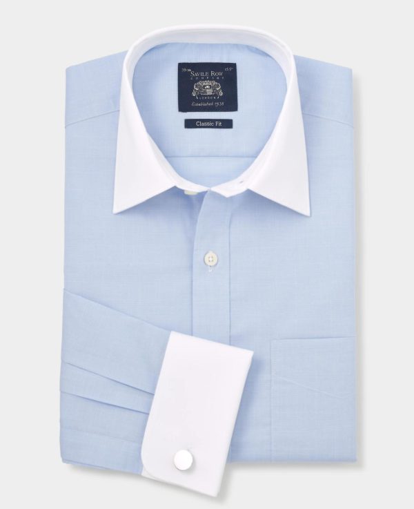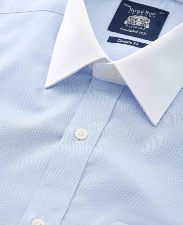 - Curl resistant contrast white Windsor collar, with an integral and removable collar stay, contrast white cuff