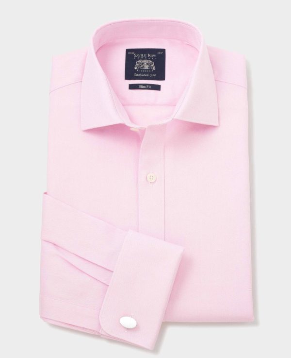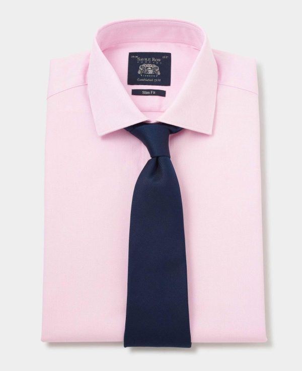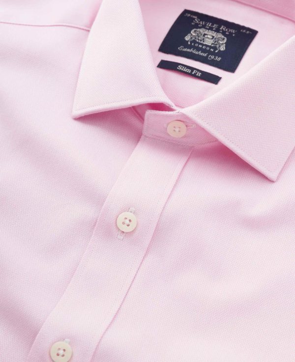 We’ve used a herringbone weave to add subtle texture to this men’s pink formal shirt. Cut to a slim fit shape, it’s made from pure cotton that’s soft and washes well. Don’t forget to add cufflinks to the elegant double cuffs.
