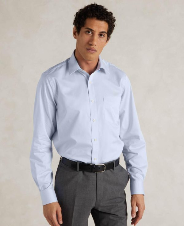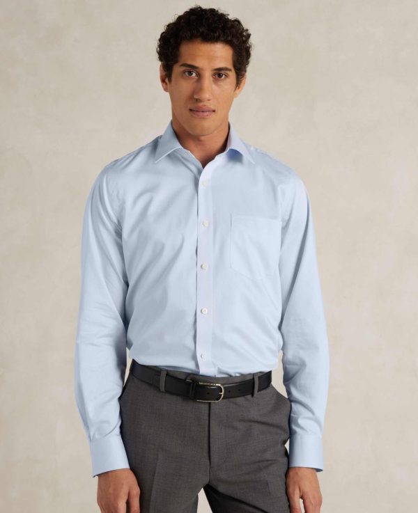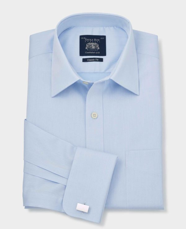 Savile Row Company Formal Shirts | Men Sky Blue Cotton Twill Classic Fit Shirt Single Or Double Cuff Blue Twill
