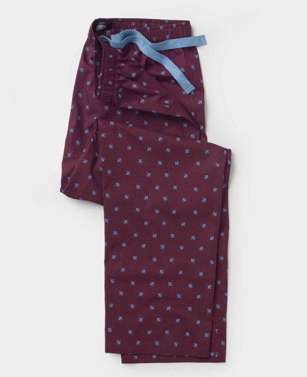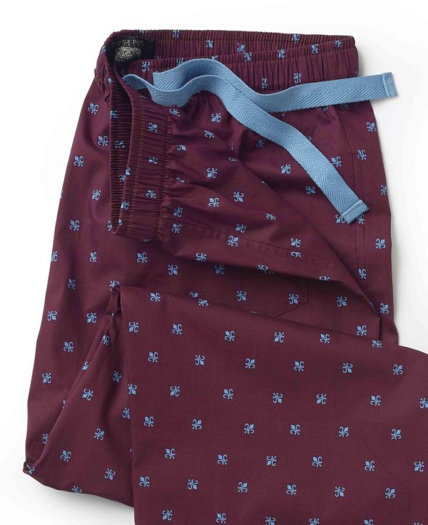 Savile Row Company Lounge Pants | Men Burgundy Fleur-De-Lys Cotton Lounge Pants Burgundy Fleur De Lys