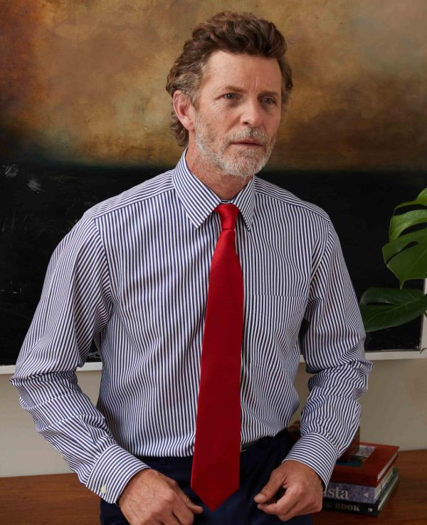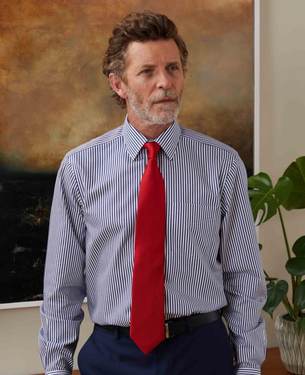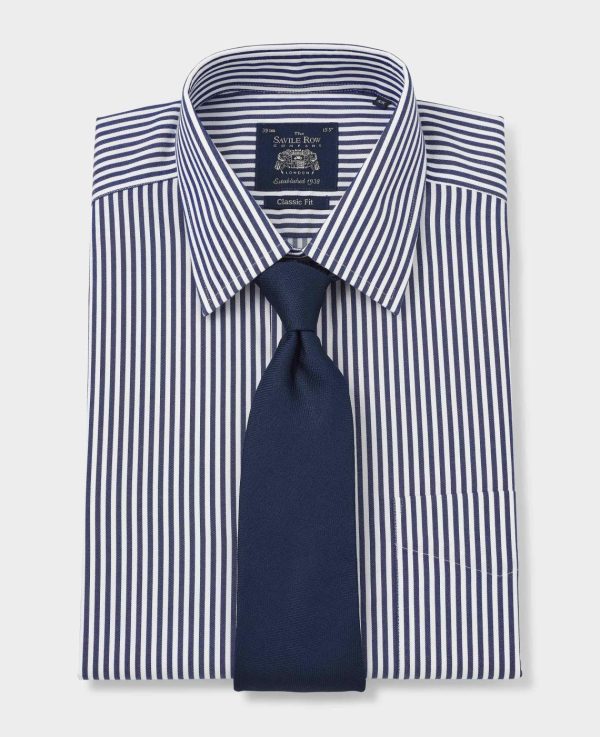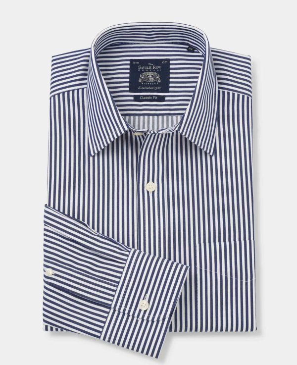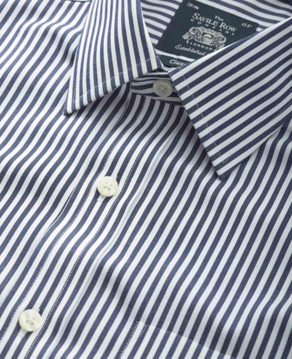 Savile Row Company Non-Iron Shirts | Men Navy White Stripe Classic Fit Non-Iron Formal Shirt Single Cuff