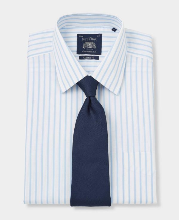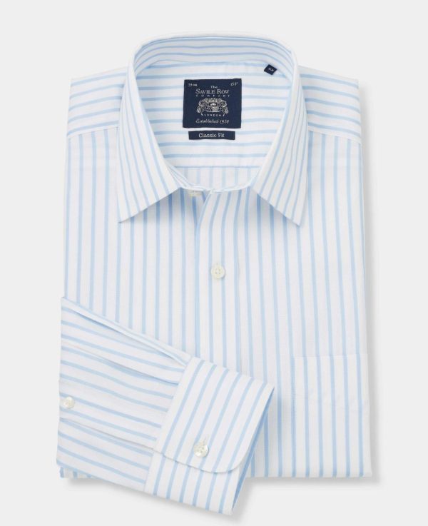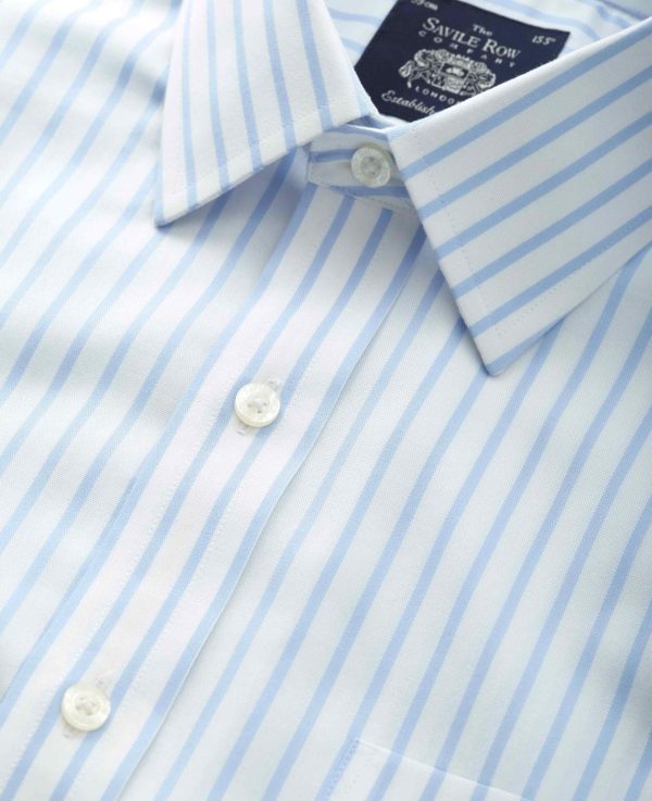White with sky blue stripes, this non-iron shirt offers instant sharpness for work, weddings and everything in-between. It’s crafted from soft cotton and finished with our famous curl-resistant collar and single cuffs.