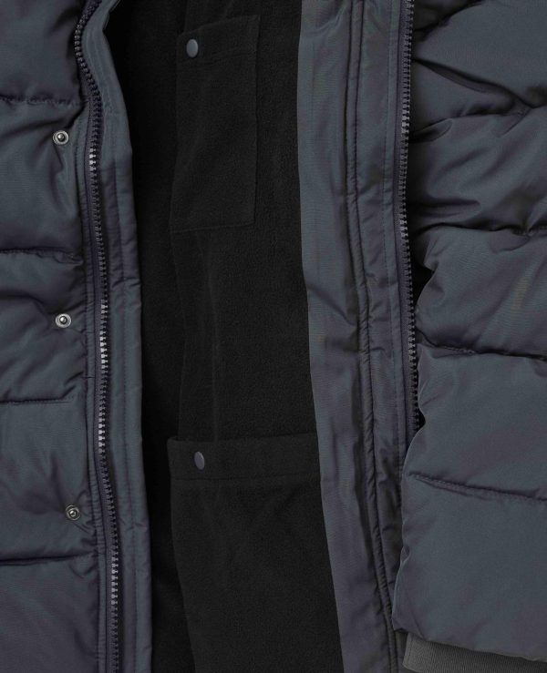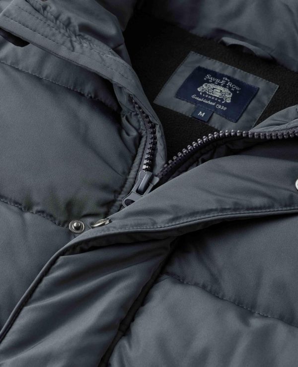 Savile Row Company Outerwear | Men Dark Grey Hooded Puffer Jacket With Rib Knit Storm Cuffs Dark Grey