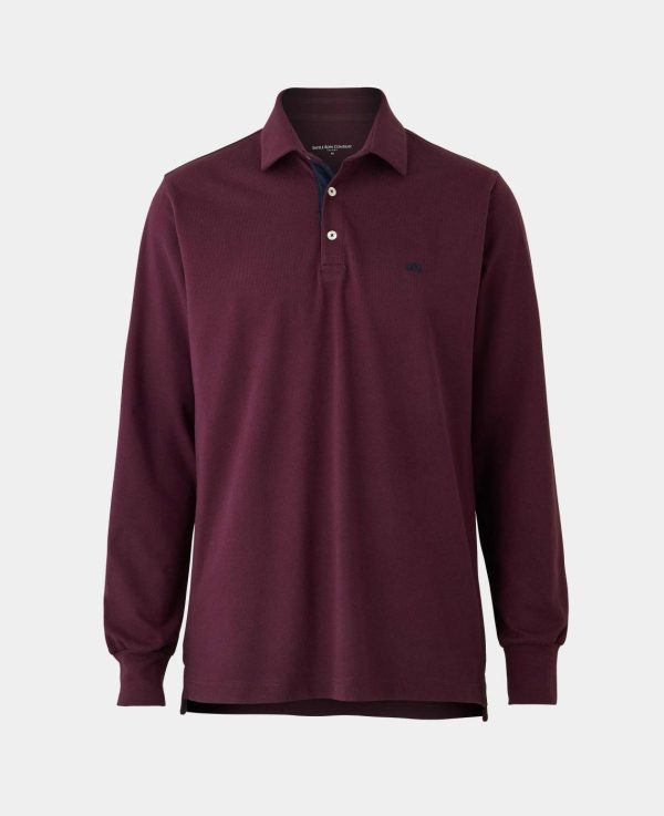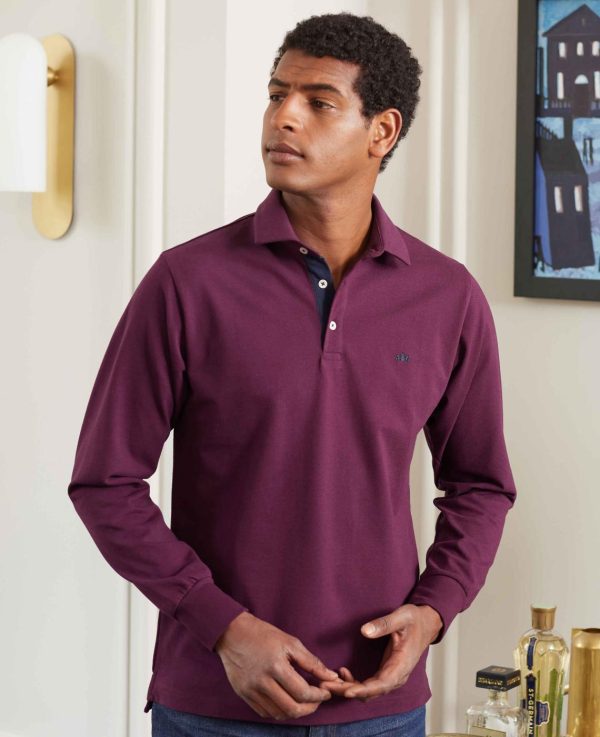 Whether you’re taking a Sunday morning stroll or meeting friends for lunch, our burgundy long-sleeved polo is a versatile choice that can be teamed with jeans, chino or trousers. The classic fit shape and cotton construction ensure optimum comfort, while there’s contrast detailing at the placket, a crest embroidery and herringbone side slits.