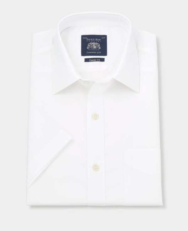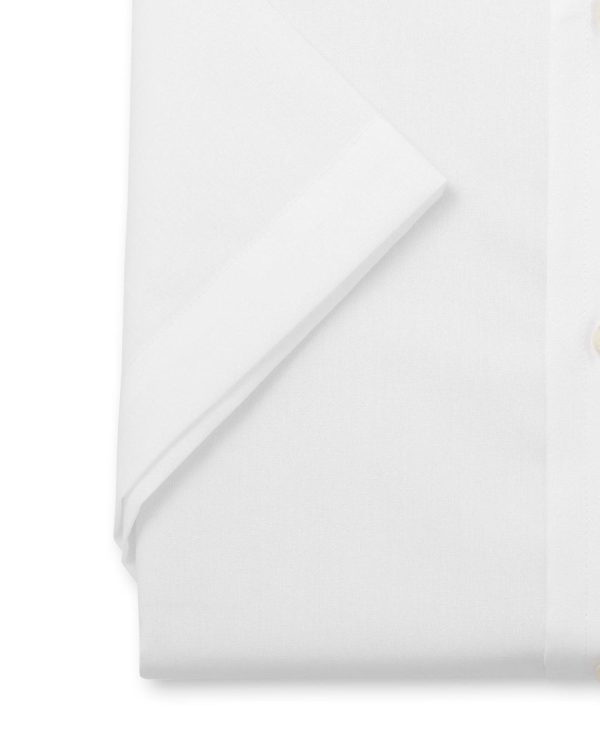 Stay smart in the summer with this men’s white short sleeve shirt. Crafted from cotton with a crisp curl-resistant collar and chest pocket, it offers a fine way to remain formal during the sunny seasons.