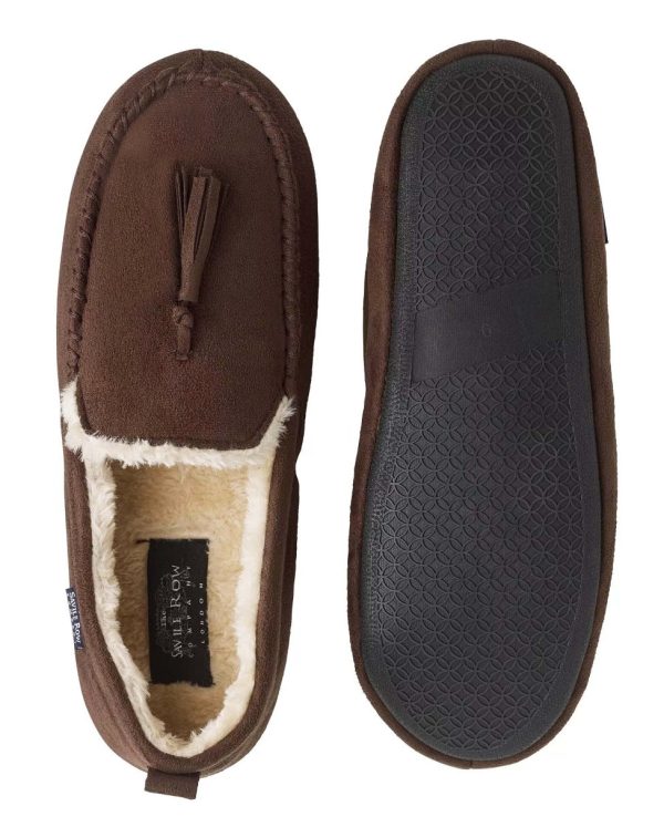 Our chocolate-coloured moccasin slippers will soon become an essential part of your downtime wardrobe. Offering both comfort and style, they feature neat tassels, cosy lining and non-slip rubber soles.