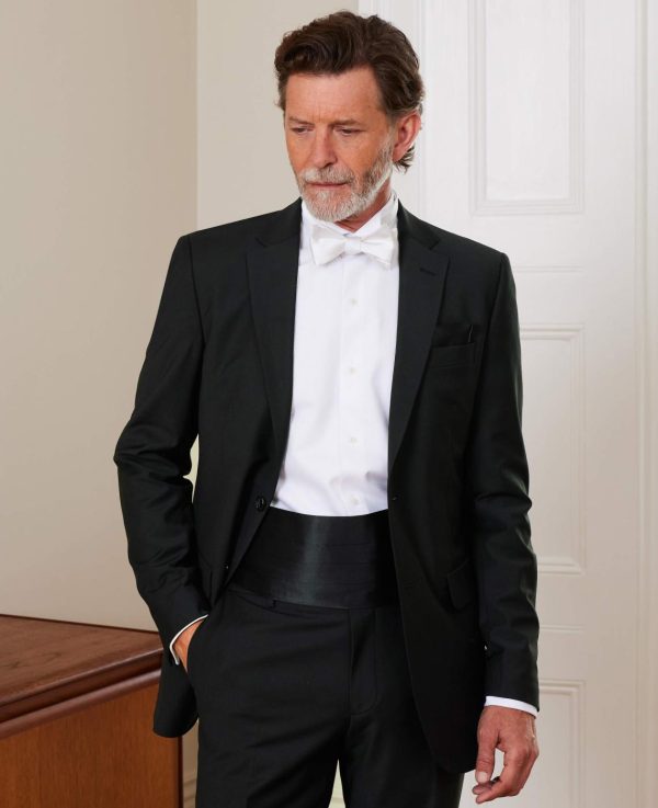 This black two-piece suit is perfect for active commuters. Cut to a tailored fit, it has been designed on Savile Row and made from a hardwearing wool-blend which helps offer protection against crushing and creasing. For an extra touch of luxury, contrast lining has been added to the single-breasted jacket.